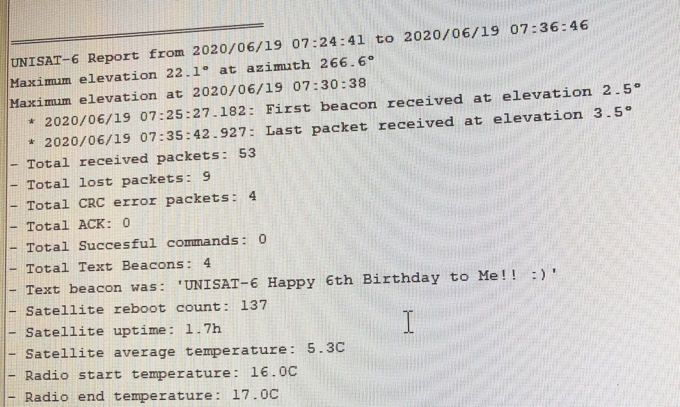 GAUSS would like to thank all radio amateurs around the globe for the continued assistance on receiving UniSat-6 data.
