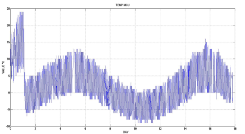 Sample of the temperature of the radio acquired during five consecutive orbits.